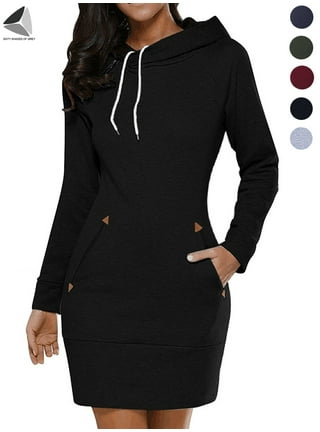 Amazon Com Going Out Tops Womens Hoodie Dresses With Pockets Long Sleeve Hooded Above The Knee Sweatshirt Dress Fall Oversize Pullover Black Sports Outdoors